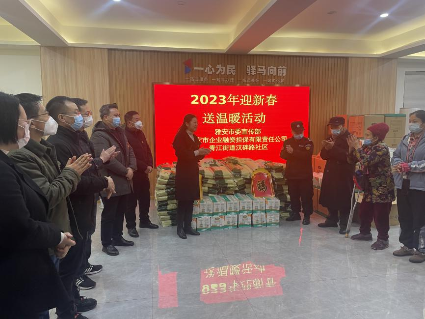 在新春佳節(jié)來臨之際,為讓困難群眾過上一個溫暖、祥和的春節(jié),1月13日,市擔保公司與市委宣傳部、漢碑路社區(qū)共同開展“迎新春送溫暖”活動,用愛心詮釋責任,用行動書寫擔當。